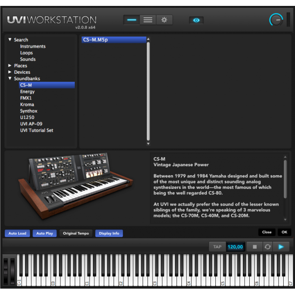 The CS-M v1.5 requires the UVI Workstation 2 and is available alone for $79 at www.uvi.net. This new version has also been included in the Vintage Vault and Vintage Legends bundles, update if free for registered users of these collections.