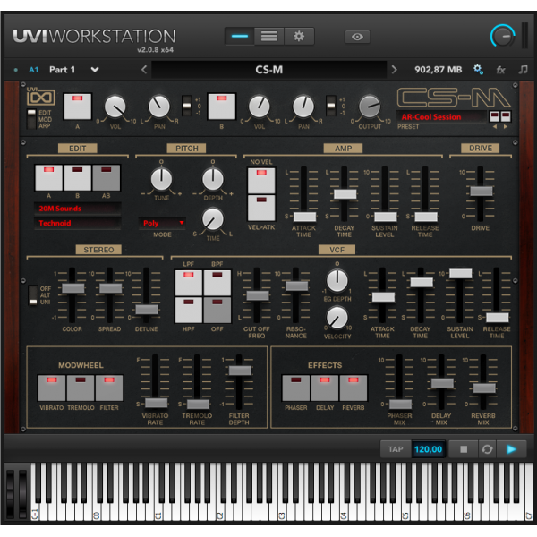In this v1.5 update, UVI added the sampled waveforms and noises of the CS-01, more than 200 presets and an optimized and faster sampling engine.