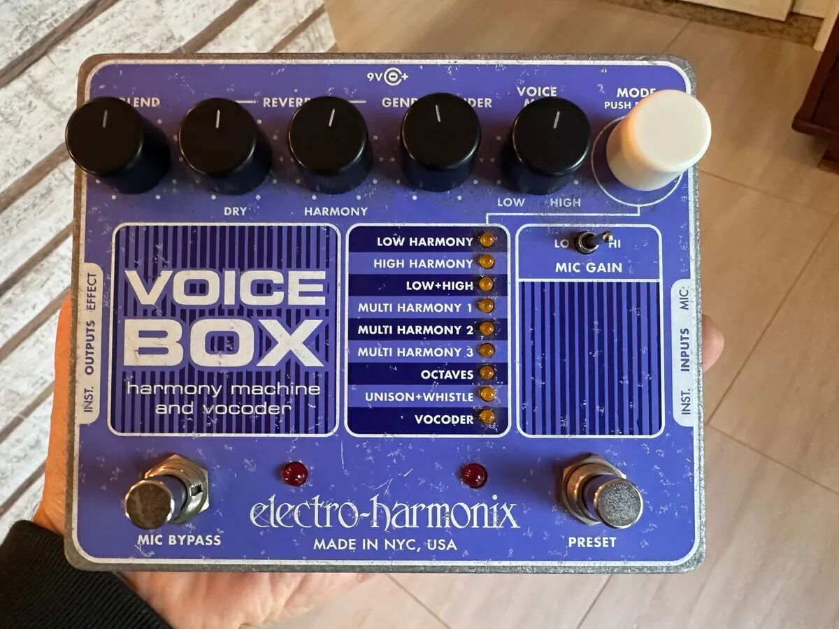 EHX magic, but some will be disappointed, because if the vocoder is fun especially with a guitar, Wisthle also against the harmonies are to choose and arrange, otherwise it's clutter, then go fishing, play on pots and when it is clear, one push and it is stored. With a keyboard, you get different sounds, not to rely on entry, which also reacts to other sound files, and yes I dared to enter an output of a PC and an MP3 and MIDI well, it works with fun harmonies. Ditto for the favorite, there are micro and micro to the box and perhaps very different headphone output consoles and amplifications. Overall, the first three modes are excellent, we say voice doublers with choice of octaves, on the other hand difficult to find the right "choir" of three multi harmonies, highly variable depending on many factors. octaves, gives a rather realistic genre in both directions: F> M, M> F.