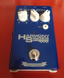 A vocal processor with guitar-based harmonies is nothing new for TC-Helicon. VoiceWorks (rack format) already offered 4 voice harmonies ten years ago. Then came VoiceLive and this year, VoiceLive Touch 2.